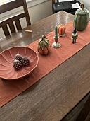 Our Five Two table runners are made to be used and enjoyed every single day. Simply toss them in the washing machine on a cool-to-warm setting with like colors, using non-chlorine bleach on tough stains. Tumble-dry low and remove promptly to avoid wrinkles. Warm iron if needed. Some shrinkage may occur.