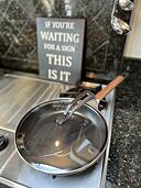 - The pan is compatible with all types of stovetops but it cannot be used in the oven.